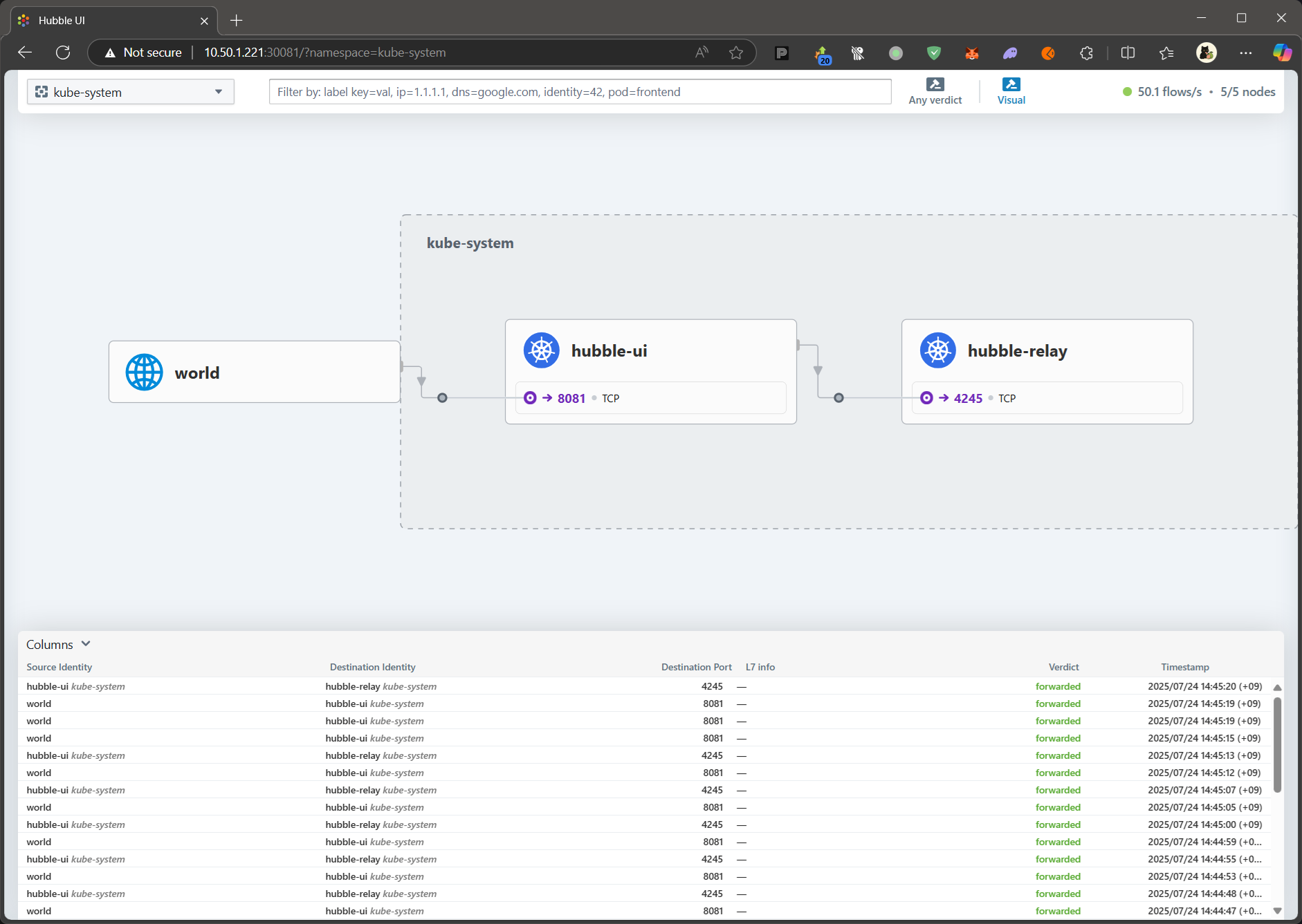 hubble-relay ClusterIP 10.43.36.85 <none> 80/TCP 8m42s